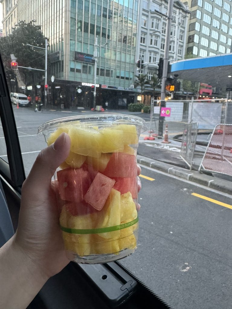 贝贝着急大家都知道,在上上下下的坡道上就开始吃了,水果杯真好吃,猕猴桃完全不酸🥝
