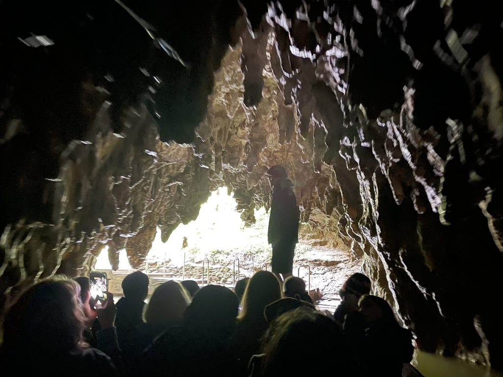 到了萤火虫洞,是一个毛利人导游带我们进去参观。除了我们,还有印度人,德国人,挺有意思的。全程不让拍照,会穿过几个溶洞,有很多钟乳石。在最大的溶洞里,所有导游都会问有没有人要唱歌,团里有一个中国秀儿唱了一段中文歌表达对老婆的爱,听的我汗毛都竖起来了。
