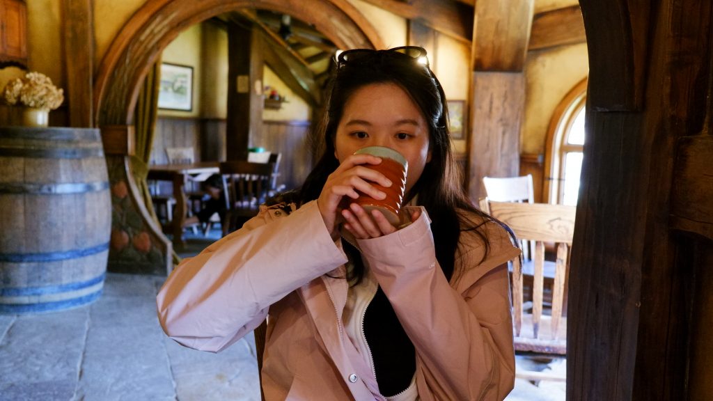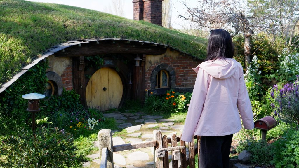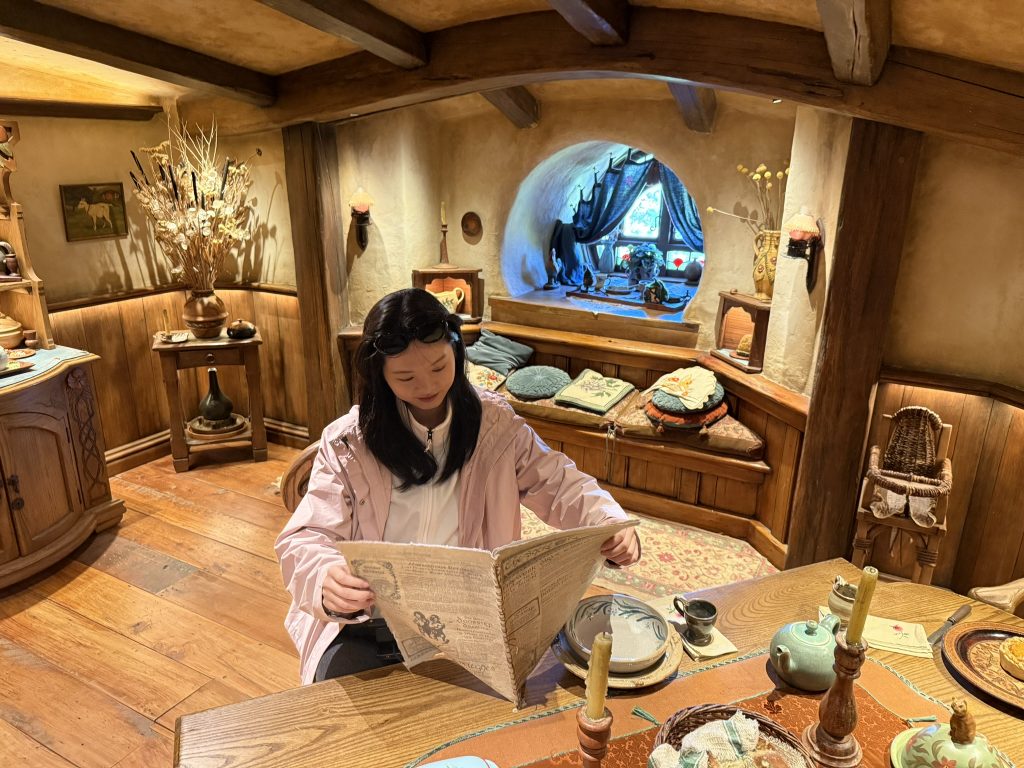 到霍比特人村拿门票坐园区的观光车,大概30个人一辆车,有一个中文导览姐姐,沿着参观路线不走回头路。